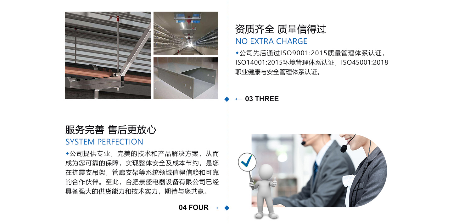 合肥景盛電器設(shè)備有限公司創(chuàng)建于2011年,注冊(cè)資本3000萬(wàn),總公司位于中國(guó)重要的科研基地,制造業(yè)基地,長(zhǎng)三角城市群中心城市-----合肥市,地理位置好,交通方便。本公司2017年從事抗震支吊架,電纜橋架,機(jī)電產(chǎn)品生產(chǎn)研發(fā),支吊架方案設(shè)計(jì),BIM管線綜合優(yōu)化設(shè)計(jì)及配套服務(wù)與一體的技術(shù)解決方案供應(yīng)。公司在產(chǎn)品系統(tǒng)設(shè)計(jì),研發(fā),生產(chǎn),運(yùn)營(yíng),銷(xiāo)售,工程安裝及售后維護(hù)配備了行業(yè)內(nèi)經(jīng)驗(yàn)豐富,服務(wù)程度高的隊(duì)伍,目前有研發(fā)設(shè)計(jì)工程師20多人,工程師6人,員工共計(jì)150多人。并擁有施工安裝團(tuán)隊(duì),有非常廣闊的市場(chǎng)和客戶源,我們的團(tuán)隊(duì)具有很強(qiáng)的創(chuàng)作性,協(xié)作性及豐厚的人才儲(chǔ)備。 公司先后通過(guò)ISO9001:2015質(zhì)量管理體系認(rèn)證...
